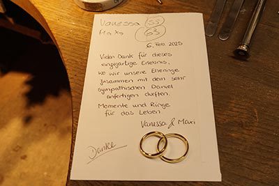Vielen Dank für dieses einzigartige Erlebnis, wo wir unsere Eheringe zusammen mit dem sehr sympathischen Daniel anfertigen durften.