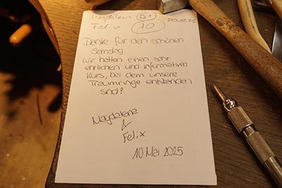 Danke für den schönen Samstag. Wir hatten einen sehr ehrlichen und informativen Kurs, bei dem unsere Traumringe entstanden sind.