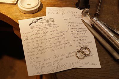 herzlichen Dank für das unvergessliche Erlebnis. Die Entstehung der Ringe vom Rohling bis zum Schmuckstück war faszinierend.